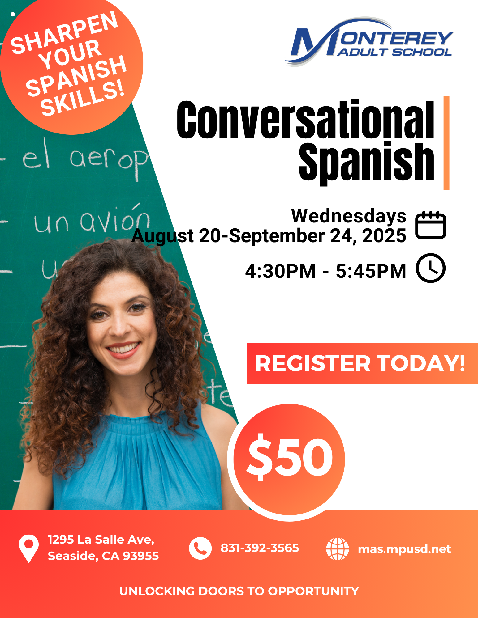Learn the fundamentals of Spanish with basic vocabulary and common phrases, verb tenses, and practical topics to better communicate and support our Spanish speaking community members. $50